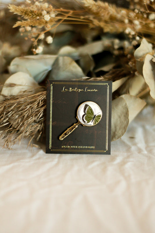 Cabinet de curiosités est la collection phare de La Boutique Lunaire, celle avec laquelle tout a commencé. Elle se compose de pin's représentant des papillons sous cloches, une main de chiromancie, des insectes, mais aussi d'illustrations d'études de scarabées ou de papillons, et d'autres créations originales reflétant l’univers mystérieux et ensorceleur d'un cabinet de curiosités.