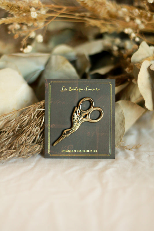 Pin's ciseaux cigogne dorés