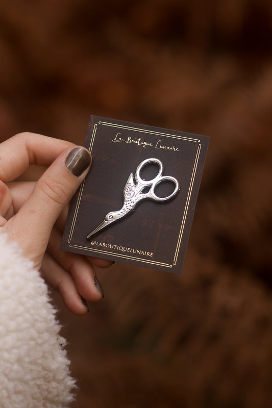 Pin's ciseaux cigogne argentés