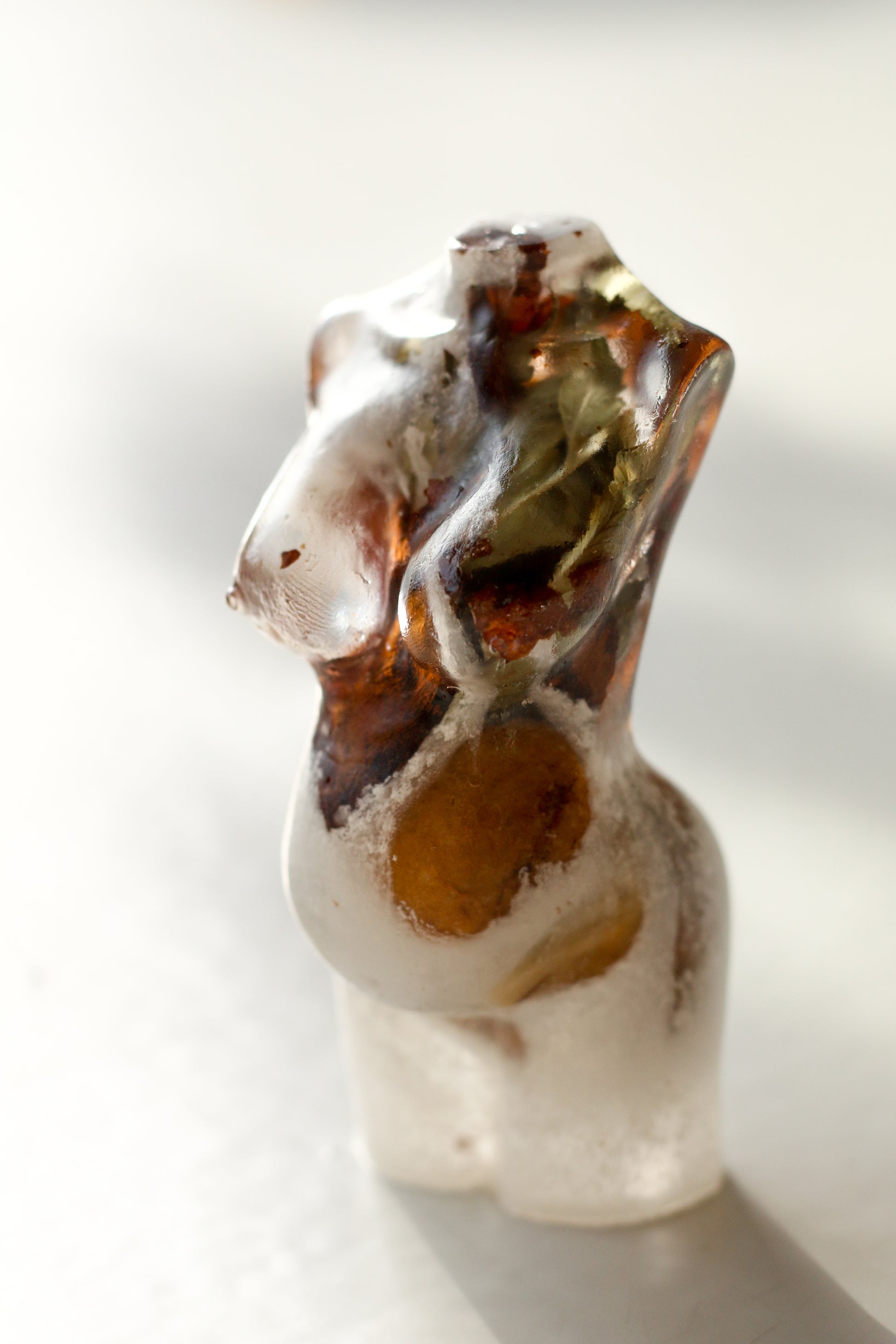 Statuette d'un torse de femme enceinte, fait main en résine. Une décoration d'intérieur unique, un objet d'art.